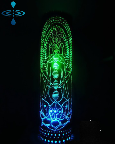 A Luminária Terapêutica Renascimento, com seu design intrincado e simbolismo profundo, é o centro desta luminária.